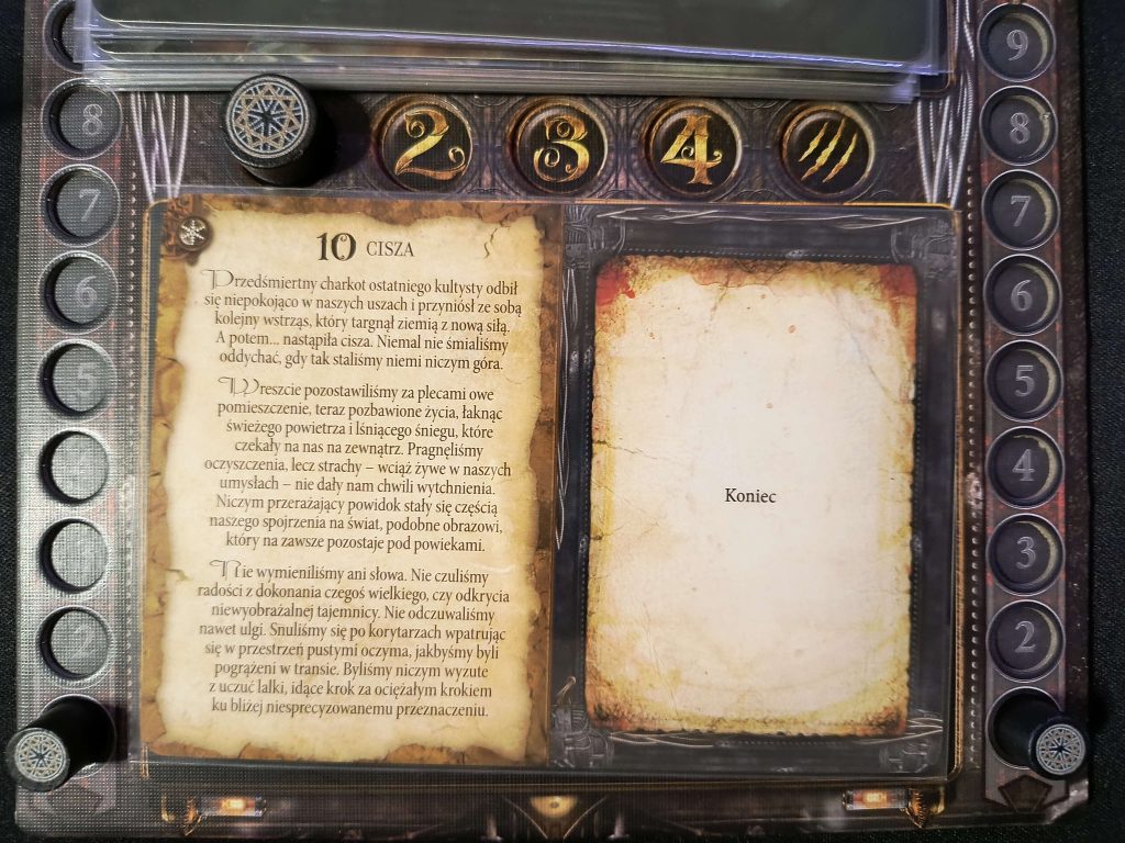 Staliśmy teraz w osłupieniu, wpatrując się w makabryczny stos gnijących ciał. Nie czuliśmy zadowolenia ani ulgi. Przerwaliśmy rytuał ale czuliśmy wszyscy, że to jeszcze nie koniec. Po chwili ruszyliśmy do wyjścia ale żadne z nas nie miało ochoty na rozmowę, przemierzyliśmy całą drogę na powierzchnię w całkowitym milczeniu.