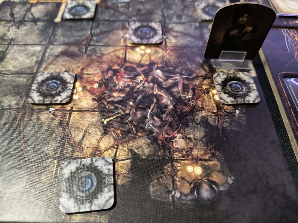 Każde z nas obrało swój pierwszy cel i postanowiliśmy zaatakować z daleka. Pierwsi kultyści padli na ziemię ale ku naszemu zdziwieniu, pozostali nie zaatakowali nas. Zamiast tego zacieśnili krąg i kontynuowali rytuał. Wiedzieliśmy, że czas nie jest naszym sprzymierzeńcem. Ruszyliśmy w kierunku pozostałych trzech i z tymi też udało nam się rozprawić bez większego problemu. Całą ta sytuacja była bardzo dziwaczna.