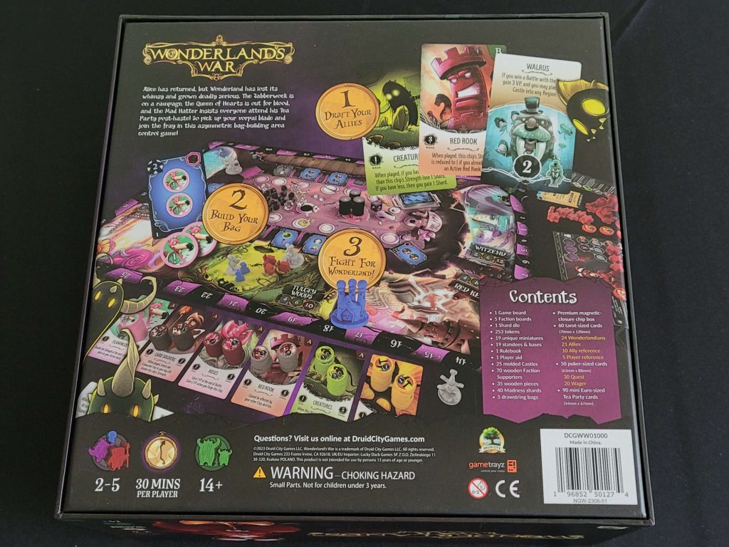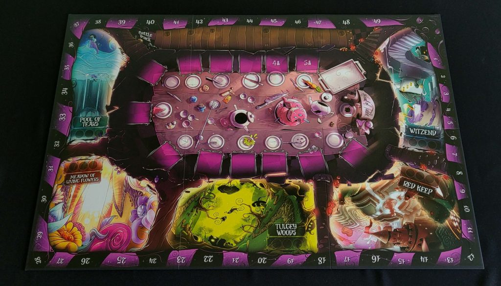Zwierciadło się rozbiło, szaleństwo opanowało mieszkańców, a do Krainy Czarów zawitała wojna. Alicja, Szalony Kapelusznik, Królowa Kier, Żaberzwłok i Kot z Cheshire muszą zebrać wszystko, co tylko mogą, bawiąc się dobrze na przyjęciu u Kapelusznika, zanim wyruszą na bitwę!