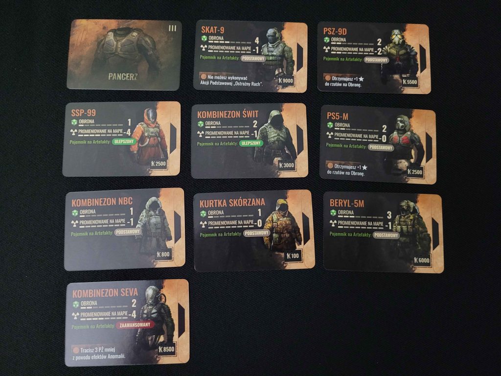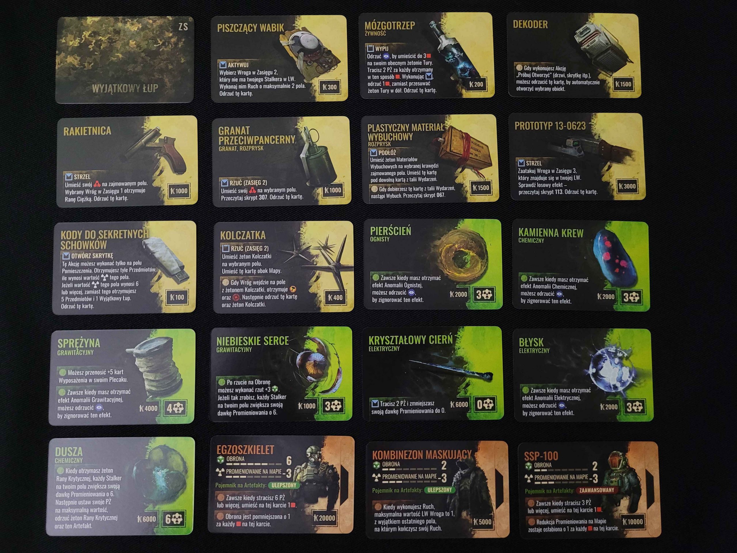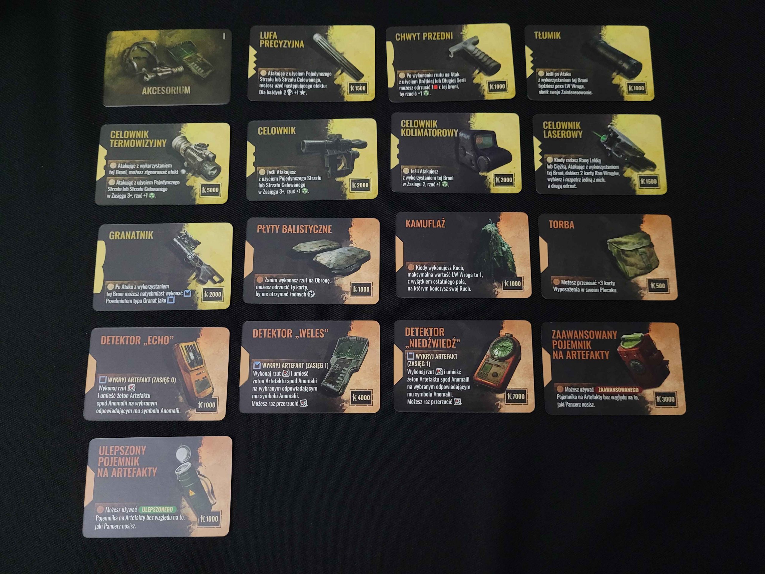 Karty łupów i wyposażenia: