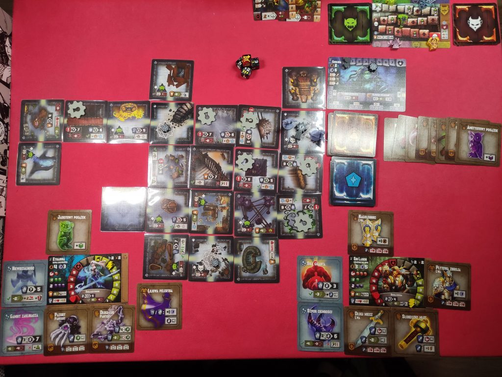 Cichymi krokami zbliżyliśmy się do celu i naszym oczom ukazały się schody. Pokonując kolejne stopnie, cieszyliśmy się w duchu, że udało się znaleźć wyjście. U szczytu wspinaczki nie było jednak wyjścia a obszerna kamienna komnata. Słabe światło, które widzieliśmy, pochodziło z prześwitu skalnego, mieszczącego się w sklepieniu sali. Słup dziennego światła, choć okazał się rozczarowaniem, dawał nam jednak poczucie, że jesteśmy już blisko. Zaczęliśmy się rozglądać czy istnieje jakaś droga, którą moglibyśmy wspiąć się na górę, gdy z ciemnego zakamarka komnaty zaczął wyłaniać się cień o dziwnych kształtach, jakby trochę ludzki ale dziwnie powykrzywiany. Wpatrując się z niepokojem w dziwną marę, zobaczyliśmy że po posadzce suną ni to węże, ni to macki…